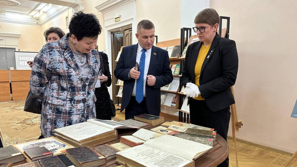 Начался вечер с экскурсии по залам библиотеки, в ходе которой участников мероприятия познакомили с образцами фонда редких книг и изданий, рассказали об их особенностях.
