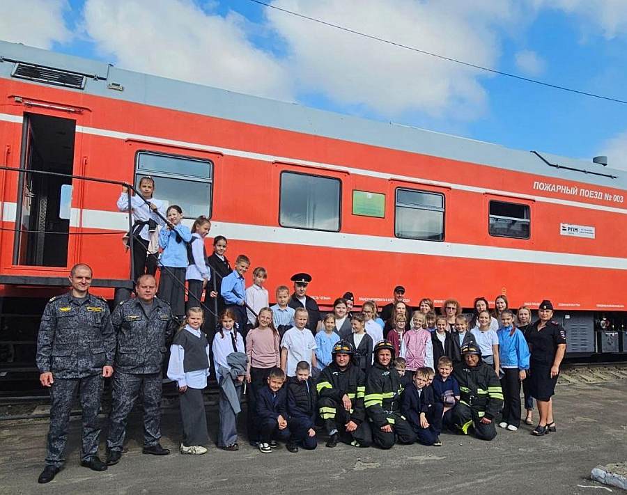 Сотрудники ЛОП на ж/д станции Унеча организовали для школьников экскурсию к Пожарному поезду