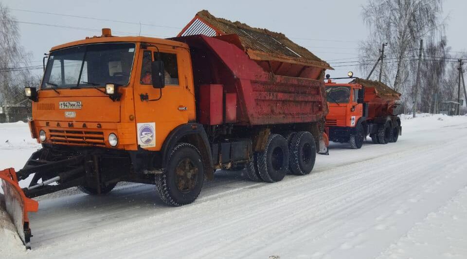 Службы Брянской области продолжают очистку и обработку автодорог от снега