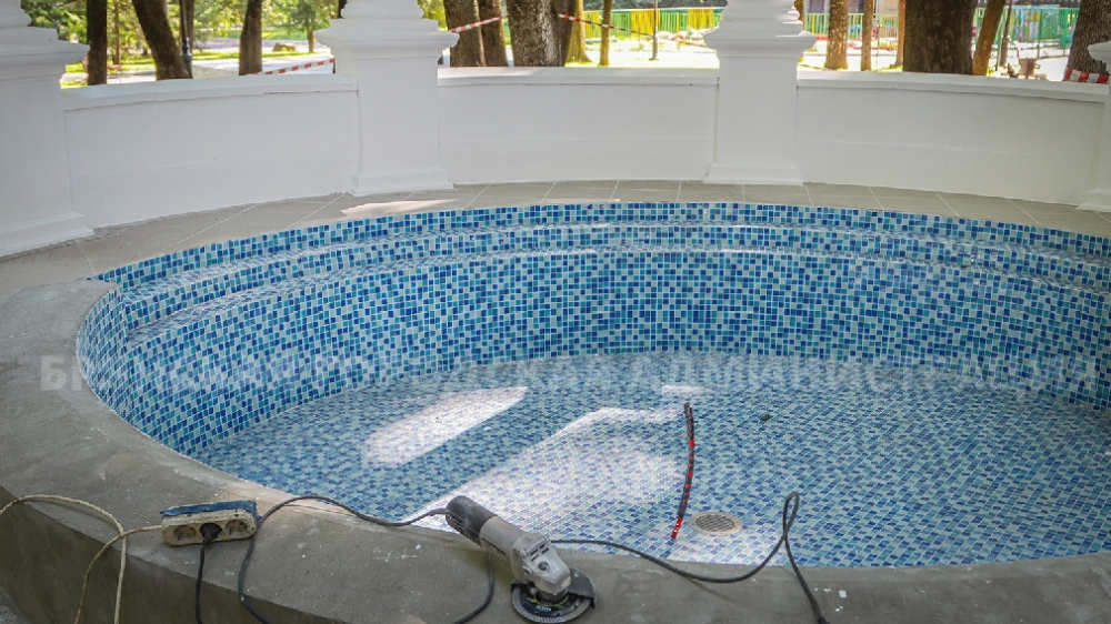На сегодняшний день свою работу уже завершили штукатуры, покрашены колонны, а в чаше фонтана сделана укладка плитки и мозаики. Теперь краской покроют передний и задний фасад сооружения, а уже завтра, 23 июля специалисты займутся монтажом оборудования для фонтана, его кольца и чаши со скульптурой композицией влюбленных голубей. К 1 августа брянцы смогут увидеть обновленную ротонду.