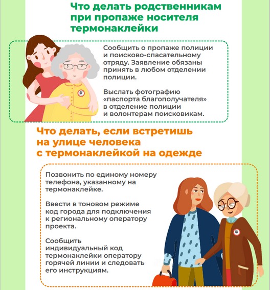 Как рассказали в пресс-службе Брянской городской администрации, пожилых людей с признаками деменции по обращению их близких БЕСПЛАТНО снабдят термонаклейками с индивидуальным цифровым кодом и контактным телефоном, на который может позвонить любой прохожий — 8-800-101-43-36 (звонок бесплатный). После этого с родственниками подопечного, телефоны которых имеются в базе данных и привязаны к конкретному коду, указанному на наклейке пожилого человека свяжется оператор.