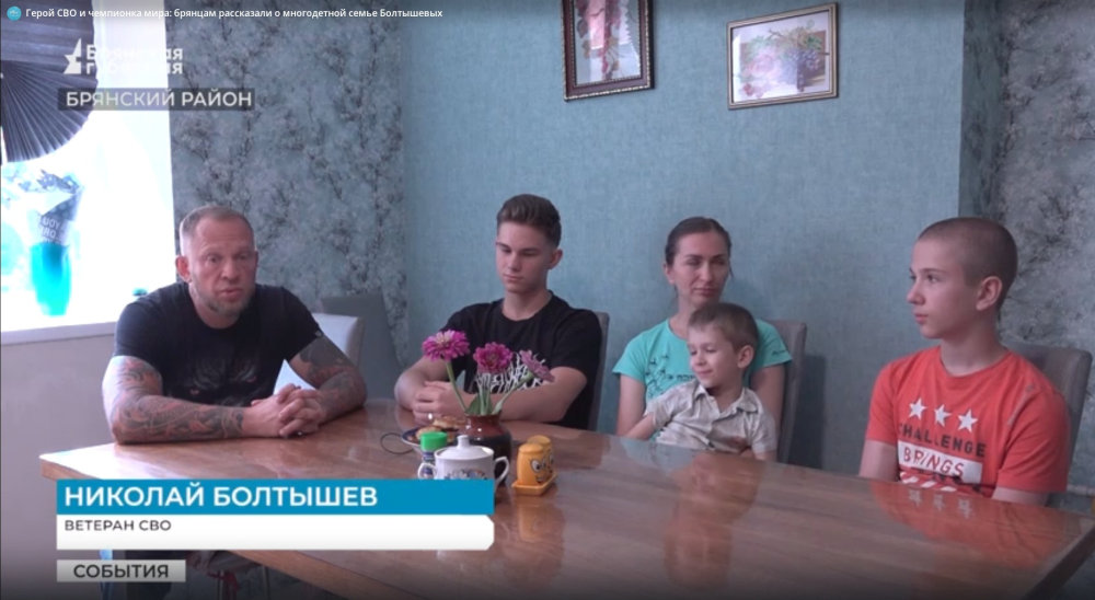 Семья Болтышевых переехала на Брянщину из Ленинградской области. Сейчас семейство проживает в п. Супонево. Николай — участник СВО и мастер спорта по борьбе. Его супруга — чемпионка мира по восточным единоборствам. Трое сыновей — тоже спортсмены, сообщает «Брянская Губерния«.