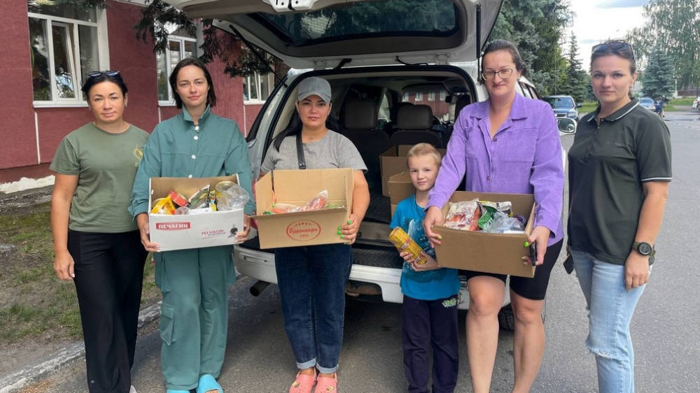 Жители Брянщины приносят для курчан продукты питания, вещи первой необходимости, средства личной гигиены и детские игрушки.