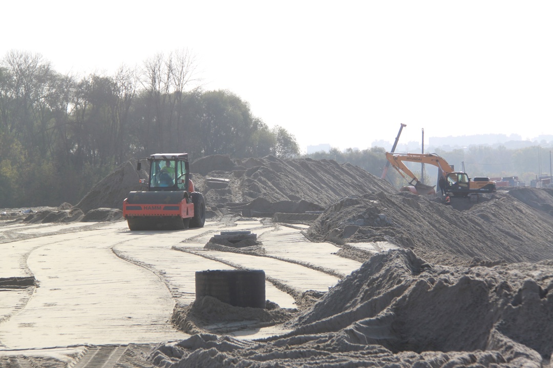 На другом отрезке улицы Ткачёвых, которая проходит вдоль реки Десны, продолжается отсыпка грунта для основания будущей дороги.