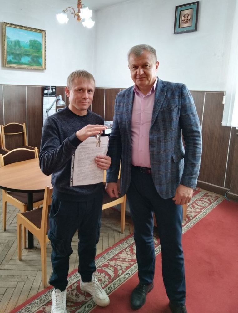 В администрации Унечского района временно исполняющий обязанности главы администрации района В.А. Дуда и исполняющая обязанности заместителя главы администрации района Г.В. Козырева вручили ключи от новых квартир, приобретенных администрацией Унечского района лицам из числа детей-сирот и детей, оставшихся без попечения родителей.