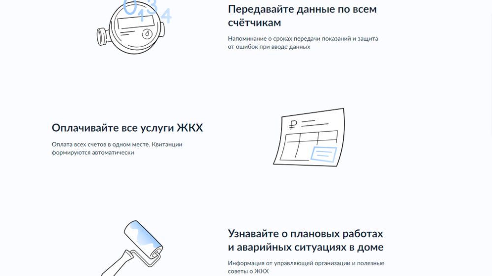 С помощью «Госуслуги.Дом» можно оплатить все счета за ЖКУ в один клик. История платежей сохраняется автоматически. Кроме того, приложение в автоматическом режиме позволяет передавать показания счётчиков, предоставляет подробную информацию о начислениях по каждой коммуслуге, а также упрощает взаимодействие граждан с управляющей компанией. Например, с его помощью можно создать заявку на ремонт, уборку территории, устранение неполадок в доме или подъезде, а также получить актуальную информацию о доме.