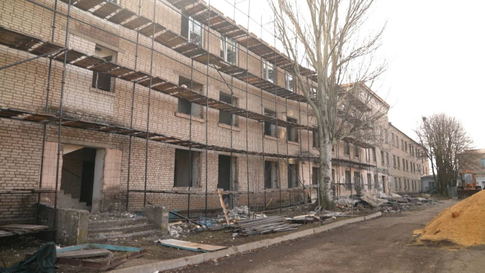 С установлением теплой погоды брянские специалисты возобновили восстановление инфраструктурных объектов в подшефной Брянке ЛНР. Самые масштабные работы ведутся в ранее заброшенном здании бывшей детской поликлиники.