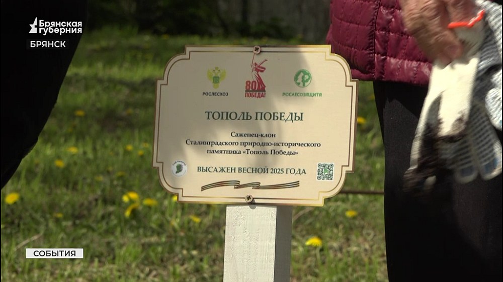 На территории парка Победы, в Брянске, высадили саженец-клон тополя Победы, легендарного дерева, пережившему Сталинградскую битву. Данное дерево является символом стойкости и непобедимости нашего народа.