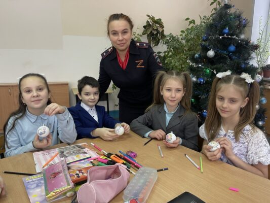 Так, для учащихся школы №1, расположенной в непосредственной близости от железнодорожных путей, инспектор ПДН майор полиции Екатерина Кускова провела особый творческий мастер-класс. Мероприятие было адресовано детям, чьи отцы выполняют боевые задачи в зоне СВО. Полицейский и ребята вместе расписывали новогодние шары, загадывая на них желания.