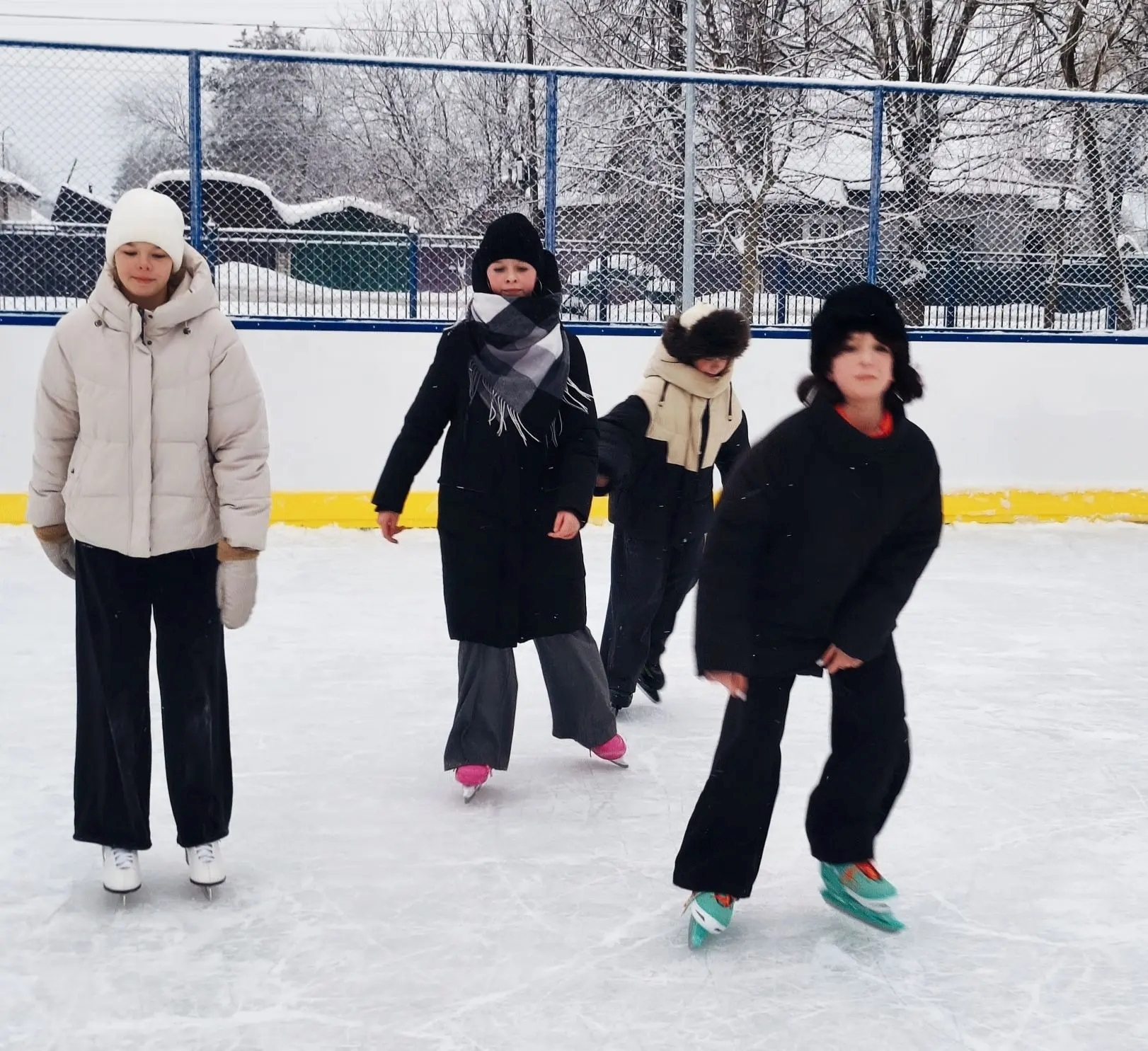 Современный корт работает и на территории школы №4, который также был открыт в рамках инициативного бюджетирования. Здесь залит каток, на который приглашаются все желающие весело и с пользой провести время.