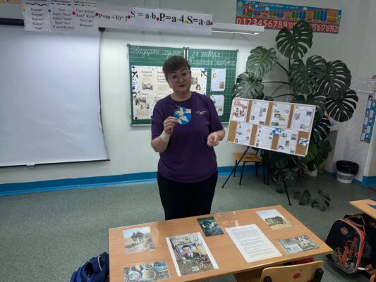В начале встречи Ольга Николаевна Мельникова рассказала исторические факты о блокаде. Она рассказала, что фашисты считали, что Москва — это сердце России, а Ленинград её душа. Как человек не может жить без души, так и страна потеряет свой боевой дух, когда лишится Ленинграда. Поэтому один из основных ударов они направили на Ленинград с целью стереть его с лица земли. Началась блокада. Настали страшные, тяжелые блокадные дни. Их было 872… Норма хлеба, которую давали жителю блокадного Ленинграда- 125 грамм и всё, больше ничего — только вода. Дома не отапливались, не было угля. Люди в комнате ставили буржуйки, а в них жгли мебель, книги, письма, чтобы как- то согреться. Но даже в самые лютые морозы люди не тронули в городе ни одного дерева. Они сохранили сады и парки. Весной 1942 у многих ленинградцев на груди появился жетон с изображением ласточки с письмом в клюве. Этот знак стал ответом на заявление фашистов о том, что теперь в город даже птица не пролетит.
